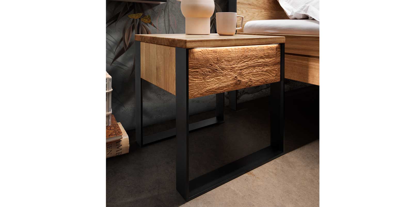 Wildeiche geölt Front geschrobbt Metallkufen schwarz auch mit LED-Beleuchtung möglich