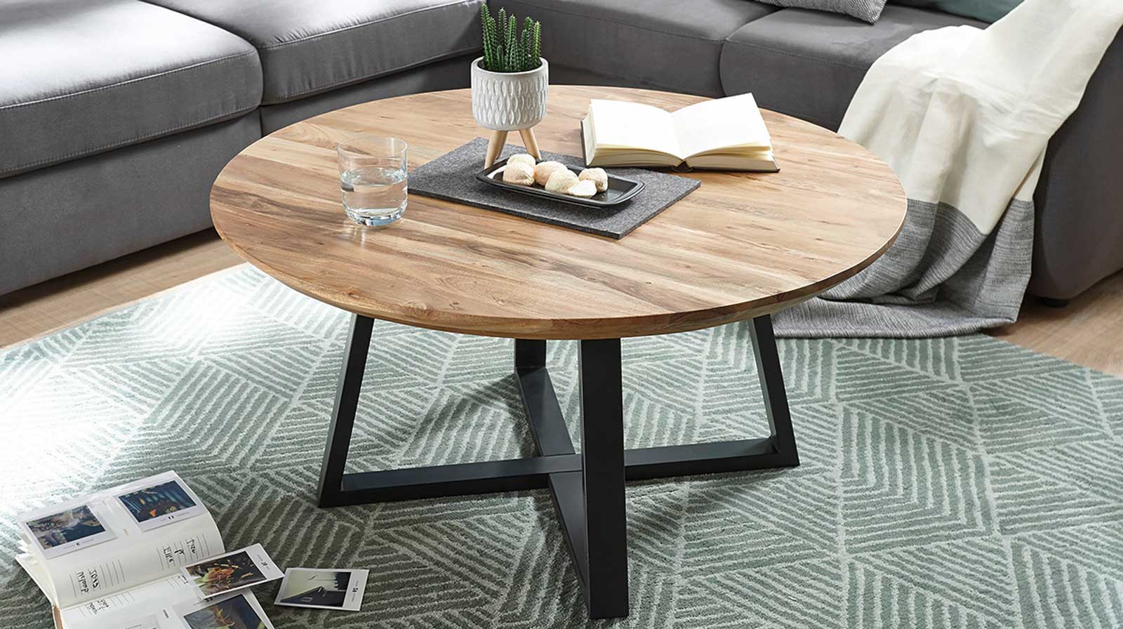 Platte Akazie massiv grau lackiert Gestell Metall schwarz matt