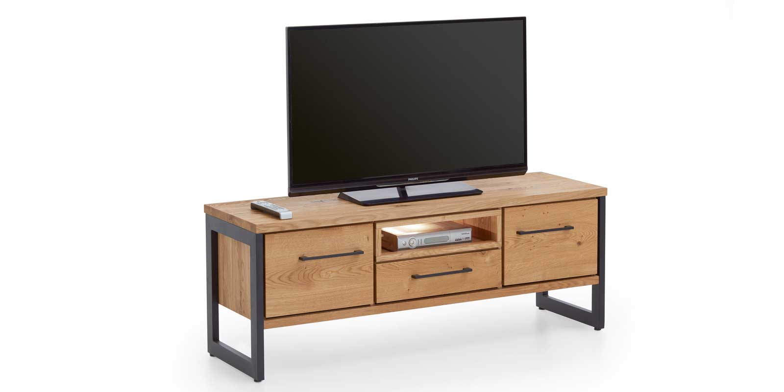 Eiche massiv gebürstet, geölt Gestellrahmen und Griffe Alteisen-Optik